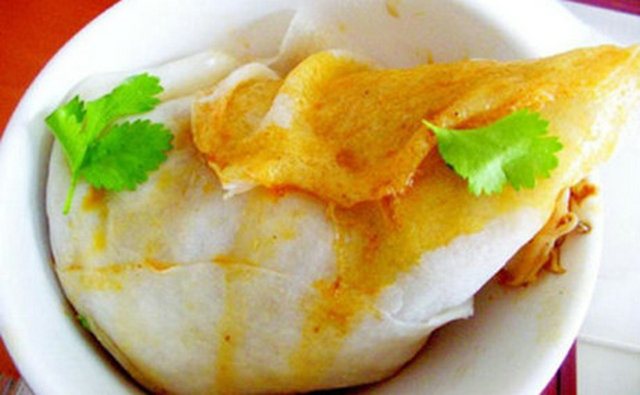 四个薄软的圆形外皮,摊好叠放在一起,从蒸汽火锅里捞出煮好的味道鲜咸,带点卤味又不是很种口味的菜:豆芽,黄瓜,面筋放如皮上,卷起.另外你也可以自选加入鸡蛋,香肠和调味料:辣椒酱和香菜。一起卷入馍皮中,一个味道不错的田三卷馍就是它了。