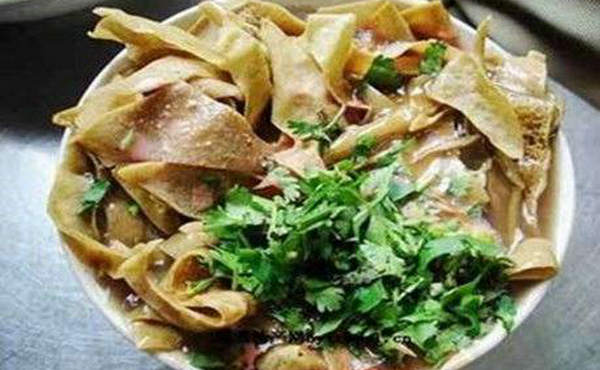 老天津人把绿豆煎饼(天津人称为嘎巴)切成细条,拌入制好的卤汁,配以小料,做成独具特色的嘎巴菜。