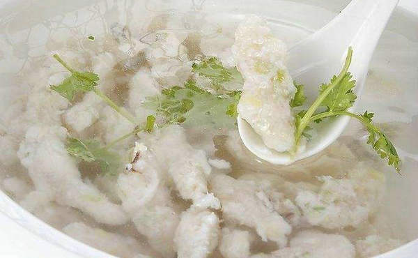 4.锅放水,烧开,然后改用小小火(水面在吹泡泡就可以),把揉好的鱼团放在盘子里,用筷子或用手指,把它挤成小条推在水中,待浮出水面后捞出来放在汤碗里,上面散点葱花、胡椒粉、米醋少许。锅里的原汤放点盐呀味精呀,你觉得差不多后倒在汤碗鱼丸上就行了。