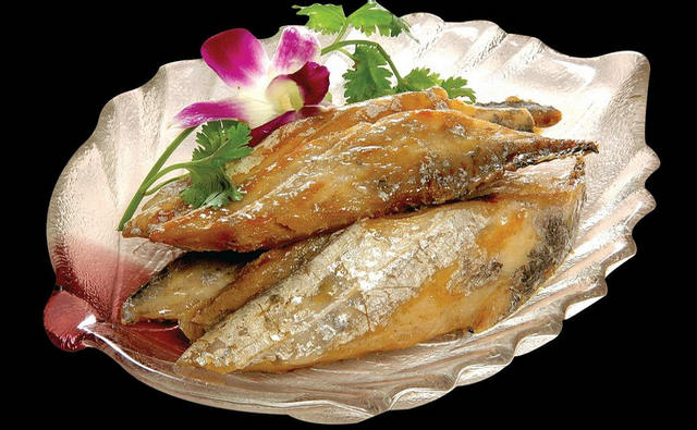 三鲍鳓鲞,是舟山的传统美食。鳓鱼经腌制后,称“咸鳓鱼”。凡经三次反复盐腌,称“三抱咸鳓鱼”,久贮不坏。鳓鱼用酒糟糟之,即成久负盛名的“糟鳓鱼”。三鲍勒鲞用盐经过3次以上腌制而成,配以鸭蛋、火腿片、姜片、黄酒等副料蒸之,肉质红嫩,咸鲜可口,是舟山居家传统名菜。