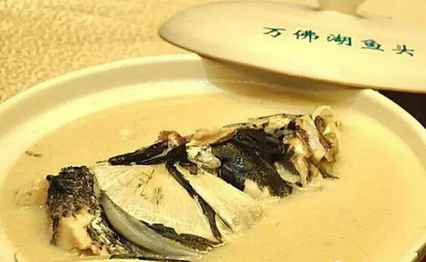 万佛湖鱼头是一道以鱼头为原料的美味佳肴,具有养颜美容之功效,具有丰富的蛋白质,适合各个阶层的人士食用。据说当年姜子牙钓鱼的地点正是万佛湖,而纣王最喜欢吃万佛湖的鱼头,称万佛湖鱼头为'天下第一鱼头‘。该种鱼含降低血压、软化血管、抗衰老的DHA、EPA及孵磷脂等特殊物质,是不可多得的食疗保健品。万佛湖鱼头已与合肥多家大宾馆签订了常年供货合同,还远销华东、东北、华北地区。