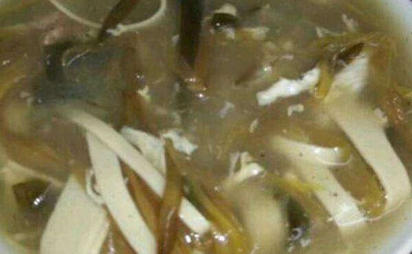 3.烧开后,放入胡椒、豆腐皮、青菜、海带丝、鸡蛋皮等佐料,即可食用。