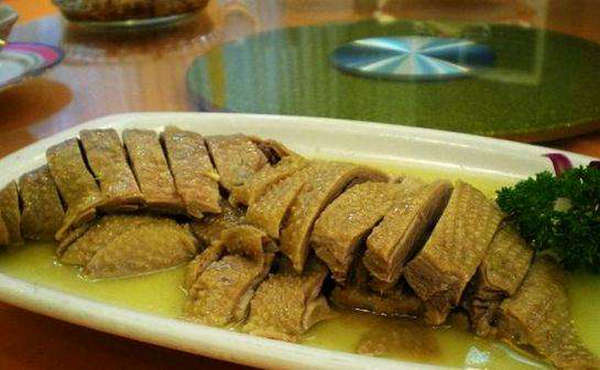 梅市咸水鹅,是凤阳县特产,历史悠久,源于明朝洪武年间,一回民从河南南下,落脚于梅市池河岸边,以养鹅卤鹅为生,因其手艺高明,味道特别,而远近闻名,流传至今。梅市咸水鹅之所以味道独特,主要是在选鹅、配方、火功三个环节特别讲究,所以梅市咸水鹅饱满、色泽黄亮、并有淡淡的草药味。
