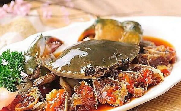 1. 选用每只重150 克左右的肥壮活蟹4 只,先将它们放在活水中浸养两三天,让其吐尽泥沙,然后洗净沥干水分;