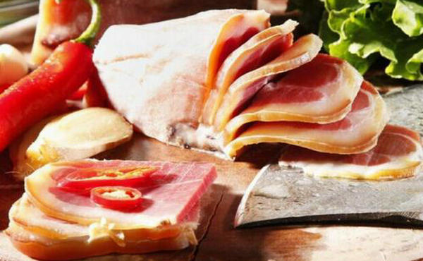 休宁县腌制火腿已有千年历史,据罗愿《新安志》载:“中家以上岁别饲大猪至二三百斤,岁终以祭享,谓之年彘,而方兴记以火肉(即腊肉、火腿)石芥为农民之珍”。明弘治《徽州府志》中记载:“多于入腊前后宰,藏瓮中磠淹槽沃近两旬,出而燎之干略带濡,置于闲屋当风处,名曰火肉,亦曰腊肉?!?/p>
