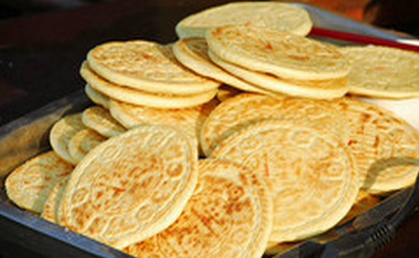 丁家壮馍,至今已有200多年历史,在濉溪的饮食中堪称一绝,以其“色味纯正,香脆可口”闻名遐迩。其制作工艺非常细致,首先要选用精细面粉,加水和,再用一根长近一米茶杯口粗的压面棍反复压制后,撒上少许芝麻,在平底锅上用文火慢慢炕热,做成的壮馍直径有40公分,厚三公分,浑圆坚硬,厚如手掌,正面焦黄,背面雪白,外酥里香,食之有筋头。壮馍很硬,要慢慢嚼,越嚼越能品出麦子的香。