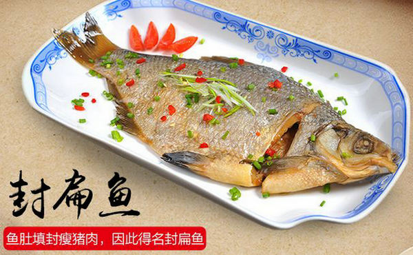封扁鱼,是含山县独有的地方特产,得名于其独特的民间工艺,保留鲜活鳊鱼的完整体型,在鳊鱼腹腔内填封肥瘦适中的猪肉,经传统腌制、卤泡制作而成,其成品肉质细嫩、醇香味美。近来年,经安徽省好再来食品有限公司推广,封扁鱼已逐步发展成为含山乃至巢湖最具代表的地方特产之一。