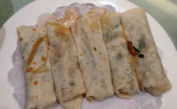 要说到卷白馍的做法,它可是饼和菜的结合,其实做起来也并不难。首先,要将面粉用热水烫过并和好,再蘸点冷水拍一下,直至面里的热气散尽。然后揉成长条,再切成均匀的面团,接下来,把一个个面团擀成薄饼,并放入煎锅内烙?!昂没ɑ剐杪桃斗觥?,饼烙好了,菜也是必不可少的。这菜可以根据自己的喜好来定。一般家里常用粉条、绿豆芽、菠菜、胡萝卜、木耳等。这里只需把胡萝卜和木耳切成丝,按照难熟的菜先炒,易熟的菜后下锅,待菜炒好后,我们便要卷了。铺饼摊菜,一一卷来。很快,一盘色、香、味、形样样俱全的卷白馍就做好了。