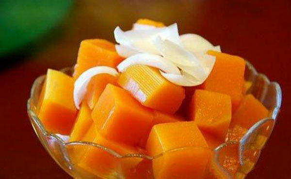 “北瓜揽饭”中的瓜块香甜糯柔,绿豆开花沙软,色泽黄绿相间,易消化富营养,即可当饭吃,又可佐餐搭配饼馍、米饭、稀饭等,实为老幼皆宜的特色佳肴。