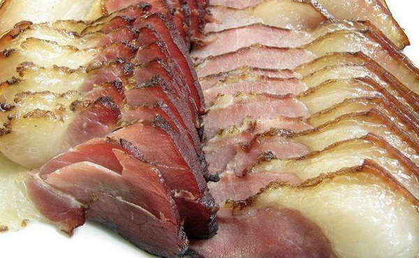 烟熏腊肉是一道汉族传统名菜,在商城烟熏腊肉是山城重庆一种很有味道的年货。新鲜猪肉经过花椒、干辣子、料酒的腌制,再用清香的柏树枝小火温熏。腊肉蒸出来后,醇香扑鼻,肥而不腻,瘦而不僵,入口回味无穷。