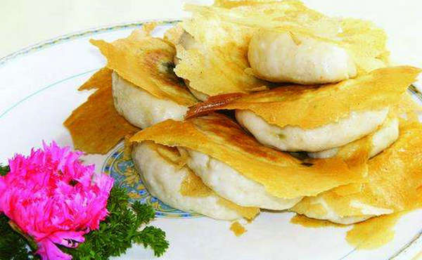 郭家牛肉煎包,以精粉、新鲜牛肉、粉条、小磨香油、葱、姜、花椒等十多种原料,经发面、调馅、擀皮、包制、水煎而成。刚出锅的水煎包热气腾腾,香味扑鼻,色泽金黄,油光透亮,诱人馋涎。