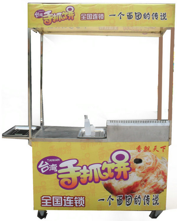 手抓饼小吃车 根据笔者的调查了解,一般上图这种类型的手抓饼小吃车价格在600-1000元左右